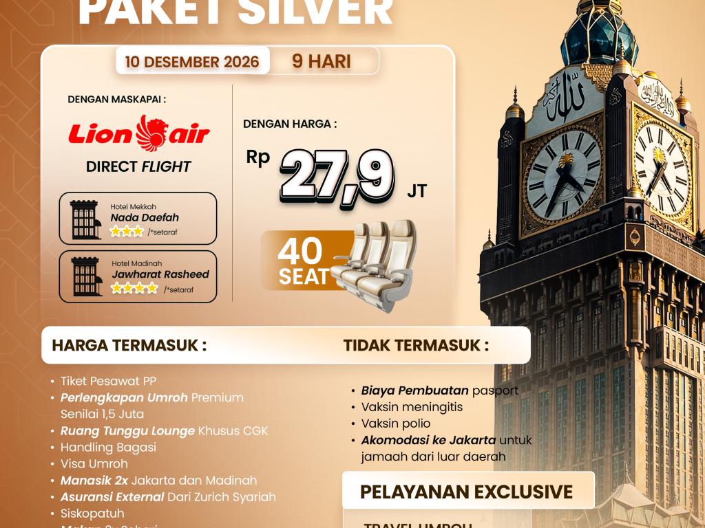 Harga berlaku untuk minimal 39 jamaah per grup, jika tidak terpenuhi akan ada penyesuaian.