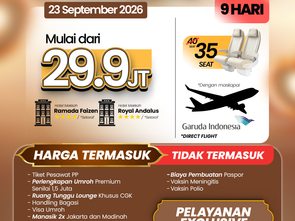 Harga dan program dapat berubah mengikuti regulasi Indonesia & Arab Saudi.
